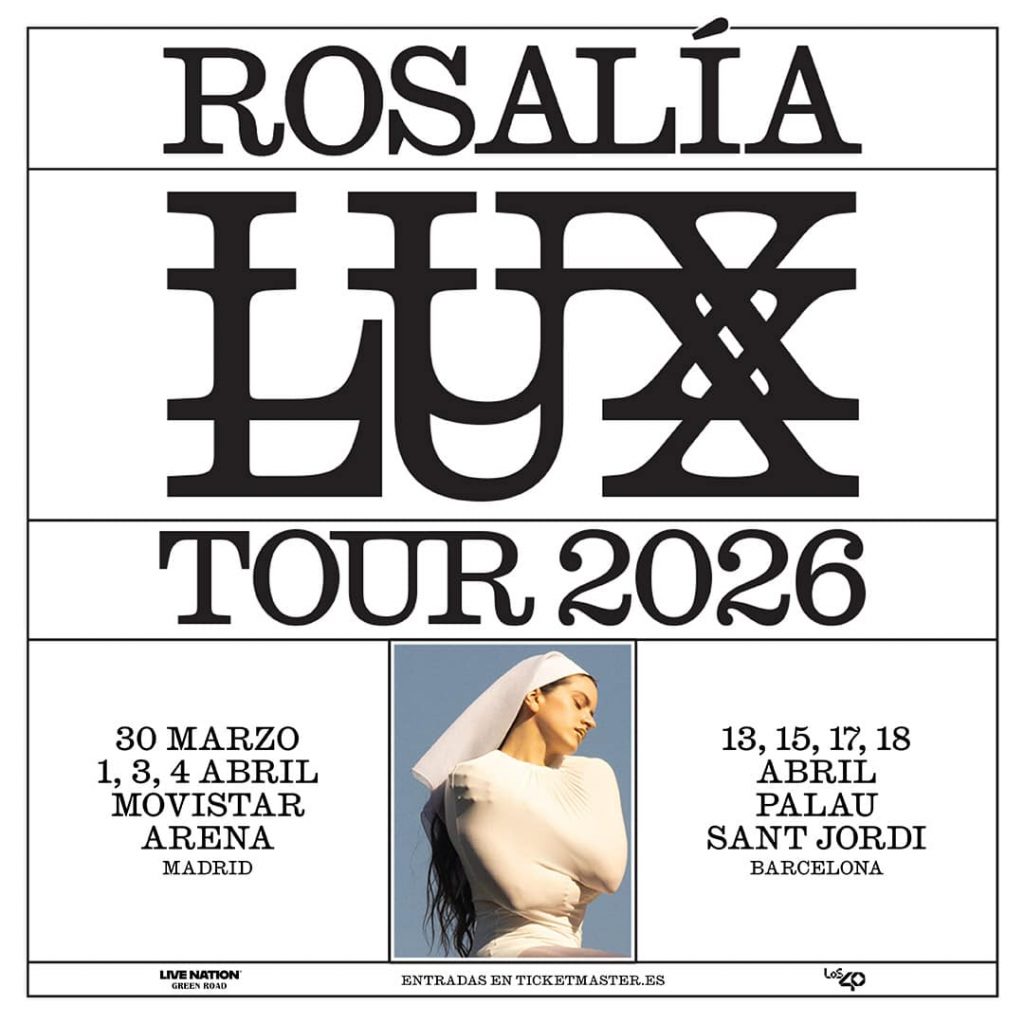 La revolución artística de ROSALÍA continúa. Tras múltiples debuts en el número uno en toda Europa, su mejor posición histórica en Estados Unidos y un crecimiento imparable en Latinoamérica, la artista española presenta LUX, el proyecto más ambicioso de su carrera, acompañado de una gira mundial destinada a convertirse en el acontecimiento musical del 2026.
